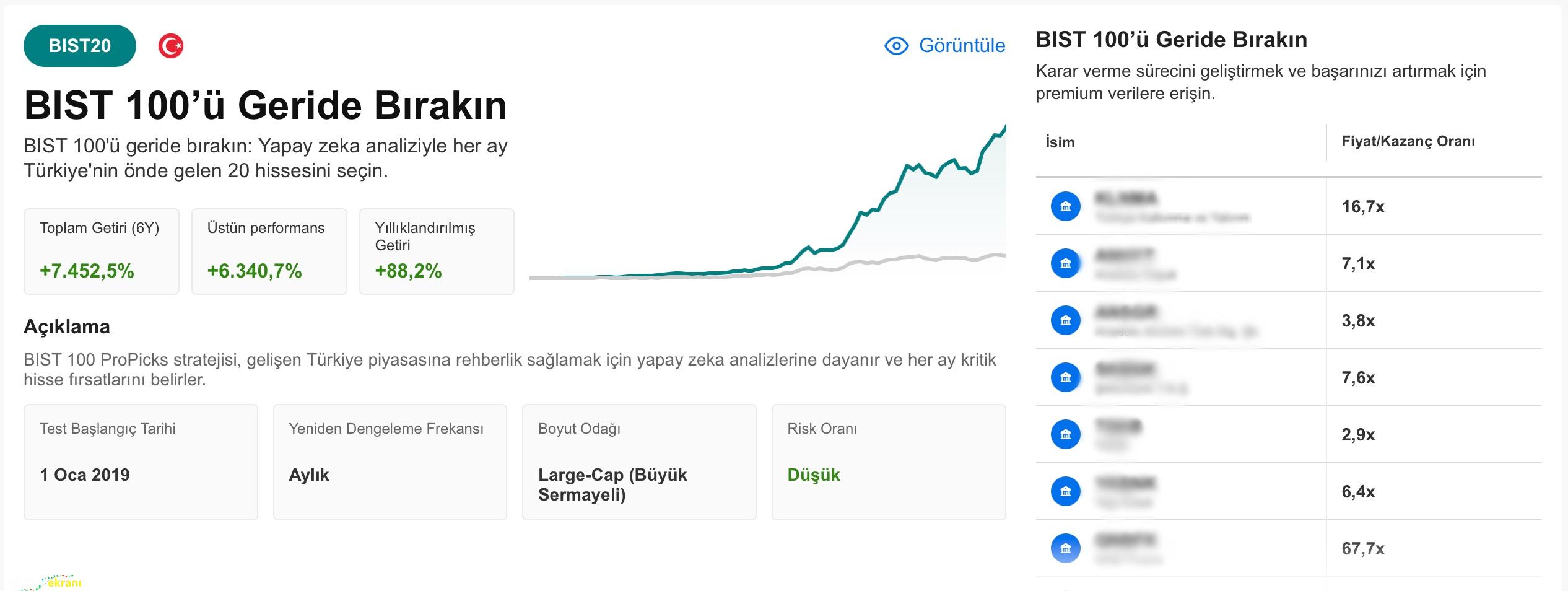 InvestingPro kullanıcıları, yapay zeka destekli hisse seçimleriyle oluşturulan bu stratejiler sayesinde endeksin oldukça üzerinde performans gösteren hisselere erişim imkânı elde ediyor. Her ay güncellenen ve detaylı piyasa analizleriyle yenilenen stratejiler, geçmiş verilerde de görüldüğü üzere sürdürülebilir fırsatlar sunmaya devam ediyor. Böylece kullanıcılar, duygusal kararlar yerine veriye dayalı analizlerle şekillenen, dengeli ve profesyonel bir portföy oluşturabiliyor.