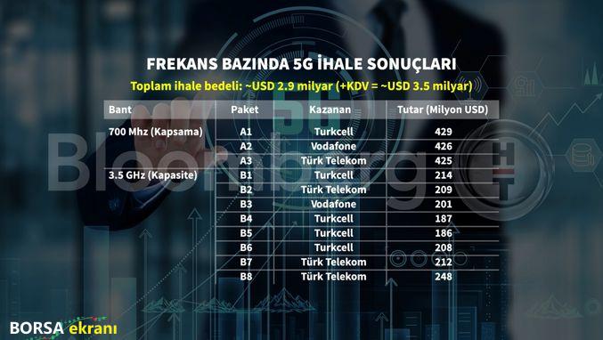 A1, A2 ve A3 paketleri için Turkcell 429 milyon dolar, Vodafone 426 milyon dolar, Türk Telekom 425 milyon dolar kapalı teklif verdi. Sözlü teklif kısmına Turkcell, Vodafone ve Türk Telekom katıldı. Ancak üç operatör de kapalı zarfta verdiği tekliflerini yükseltmedi. Böylece 5G ihalesinde 700 MHz frekansında A1 paketine en yüksek teklifi 429 milyon dolarla Turkcell, A2 paketine 426 milyon dolarla Vodafone ve A3 paketine 425 milyon dolarla Türk Telekom vermiş oldu. En yüksek teklif veren Turkcell, A1 paketini ve bant içerisinde ilk yer seçme hakkını kazandı. Turkcell, 723-733 MHz ve 778-788 MHz aralığını seçti. A2 paketini ve ikinci yer seçme hakkını kazanan Vodafone ise 713-723 MHz ve 768-778 MHz aralığını tercih etti. A3 paketi ve 700 MHz bandında kalan yerler ise 3. en yüksek teklifi vermesi sebebiyle Türk Telekom’a ait oldu. Böylece 703-713 MHz ve 758-768 MHz aralığı Türk Telekom tarafından alınmış oldu. 5G ihalesinde Turkcell, 1 milyar 224 milyon dolar ile ihalenin en çok ödeyeni oldu. Türk Telekom 1 milyar 94 milyon dolar verirken, Vodafone 627 milyon dolar ödedi. Turkcell A1 ve B1, B4, B5 ve B6 paketlerini alırken, Türk Telekom A3 ve B2, B7, B8 paketlerini, Vodafone ise A2 ve B3 paketini aldı. İhalede 3 operatör KDV hariç toplam 2 milyar 945 milyon dolar ödemiş oldu. Tahmin edilen ihale bedeli 2,1 milyar dolardı.