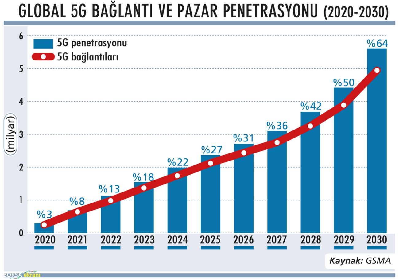 5G teknolojisi, iletişim sektöründe yeni bir dönemin kapılarını aralıyor. 5G’nin ultra yüksek hızlar, düşük gecikme süreleri ve aynı anda milyonlarca cihazın bağlanabilme kapasitesi sayesinde, iş yapış biçimlerinden günlük yaşama kadar pek çok alanda dönüşüm getirmesi bekleniyor. Bu teknolojiyle mobil oyunlardan bulut tabanlı uygulamalara, yapay zeka çözümlerinden nesnelerin internetine kadar birçok yenilik günlük hayatımıza girecek. 5G’nin getirdiği yüksek hız ve düşük gecikme sayesinde özellikle yapay zeka uygulamalarının daha güçlü hale gelmesi bekleniyor. Sektör açısından bakıldığında ise 5G; akıllı şehirler, nesnelerin interneti, otonom araçlar ve endüstri 4.0 uygulamaları gibi alanlarda yeni iş modellerinin ortaya çıkmasını sağlayacak. Bunun da aynı zamanda sağlık, eğitim, lojistik, üretim gibi kritik sektörlerin de büyümesine katkı sunacağı ifade ediliyor. Global 5G pazarı büyüklüğünün 2025 yılında 32,74 milyar dolar olacağı tahmin ediliyor ve 2025-2030 döneminde yüzde 16,8’lik bir birleşik yıllık büyüme oranıyla 2030 yılına kadar 71,17 milyar dolara ulaşması bekleniyor. Bu büyüme pastasından Türkiye de payını alacak.