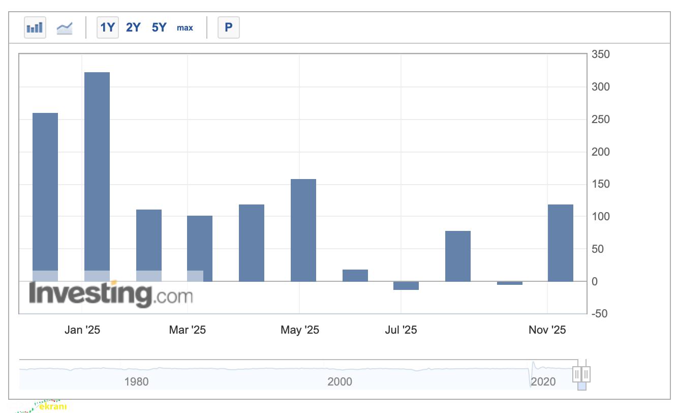 Investing.com – ABD Çalışma Bakanlığına bağlı İstatistik Bürosu (BLS) tarafından açıklanan verilere göre, Eylül 2025’te tarım dışı istihdam 119 bin kişi arttı. Bu veri, Ağustos ayında revize edilen 4 binlik düşüşün ardından gelirken, piyasa beklentisi olan 50 bin artışın da oldukça üzerinde gerçekleşti. Böylece son beş ayın en yüksek istihdam artışı kaydedildi. İstihdam artışı özellikle sağlık, gıda hizmetleri ve sosyal yardım sektörlerinden kaynaklandı. Öte yandan, ulaşım-depolama ve federal hükümet sektörlerinde ise istihdam kaybı yaşandı. Eylül ayı istihdam raporunun 3 Ekim’de açıklanması planlanıyordu, ancak ABD tarihindeki en uzun süreli federal hükümet kapanması nedeniyle rapor gecikti. Buna bağlı olarak, Ekim ayı istihdam raporu tamamen iptal edildi. BLS, bu dönemdeki hanehalkı araştırmasının veri toplanamadığı için geriye dönük olarak da oluşturulamayacağını açıkladı.