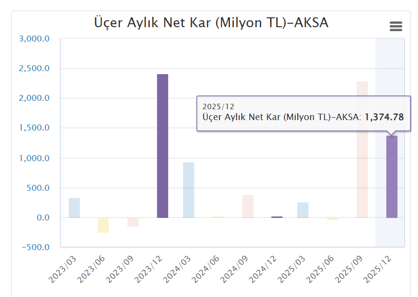 Aksa Akrilik Kimya Sanayi A.Ş., 1 Ocak–31 Aralık 2025 dönemine ait konsolide finansal sonuçlarını açıkladı. Enflasyon muhasebesi uygulanmış finansallara göre şirketin net dönem kârı 4,0 milyar TL’ye yükselerek 2024’e kıyasla yaklaşık üç kat artış kaydetti. Aynı dönemde ana ortaklığa ait pay başına kâr 1,03 TL olarak gerçekleşti.