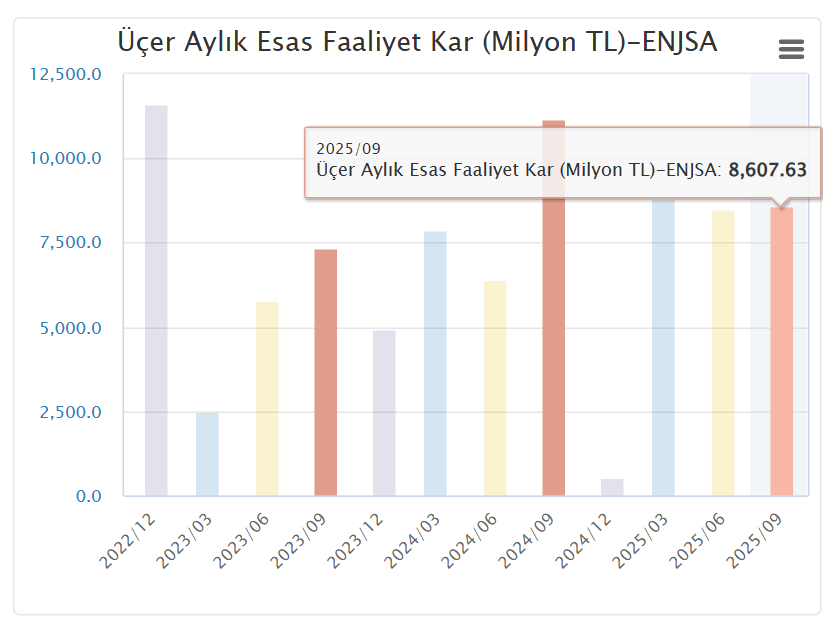 Analiz raporunda, Enerjisa’nın 2025/09 dönemine ilişkin finansal performansı ayrıntılı şekilde değerlendirildi. Buna göre şirketin hasılatı yıllık bazda 14,15 milyar TL düşerek 163,17 milyar TL seviyesine geriledi. Buna karşın satışların maliyetinde 16,67 milyar TL’lik daha yüksek bir azalma görüldü. Bu olumlu fark, brüt kârın yıllık 2,51 milyar TL artışla 41,63 milyar TL seviyesine yükselmesini sağladı. Brüt kâr marjı da %22,06’dan %25,51’e çıktı.
