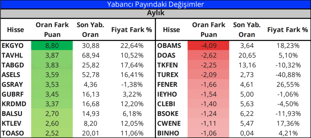 Yabancı Payındaki Değişimler