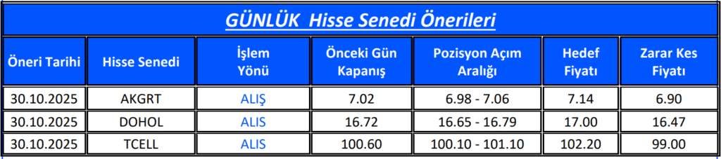 Analiz – Günlük Öneri Bülteni /30.10.2025 (Gedik Yatırım)