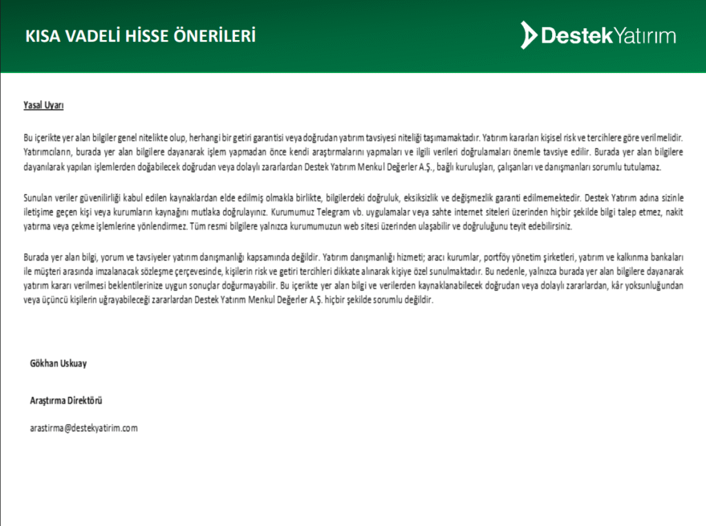 Burada yer alan yatırım bilgi, yorum ve tavsiyeler yatırım danışmanlığı kapsamında değildir. Yatırım danışmanlığı hizmeti, aracı kurumlar, portföy yönetim şirketleri ve mevduat kabul etmeyen bankalar tarafından kişiye özel olarak sunulmaktadır. Buradaki görüşler genel nitelikte olup mali durumunuza ve risk-getiri tercihlerinize uygun olmayabilir. Bu nedenle yalnızca burada yer alan bilgilere dayanarak yatırım kararı verilmesi beklentilerinize uygun sonuçlar doğurmayabilir.