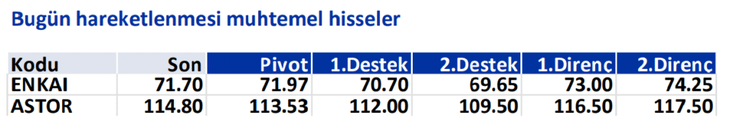 Bugün hareketlenmesi beklenen hisseler: ENKAI, ASTOR.