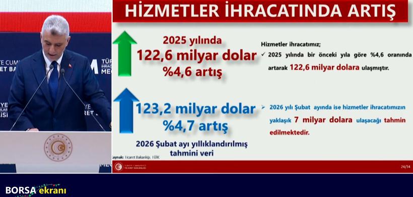 2026 yılı hedeflerine de değinen Bolat, 282 milyar dolar mal ve 128 milyar dolar hizmet ihracatıyla toplam 410 milyar dolara ulaşmayı amaçladıklarını söyledi. Küresel ticarette korumacılık rüzgarlarının güçlendiğine işaret eden Bolat, Türkiye’nin üretim, istihdam ve ihracat odaklı stratejisini sürdüreceğini belirtti. Konuşmasının sonunda ihracatçılara teşekkür eden Bolat, “İhracat koşusu bıkmadan, usanmadan, ara vermeden devam edecek” ifadelerini kullandı.