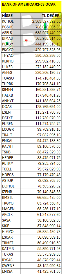 Bank of America’ın haftalık bazda Borsa İstanbul’da en fazla yatırım yaptığı hisselerin listesi. Listeyi PDF formatında indirip inceleyebilirsiniz.