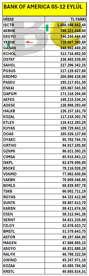 Bank of America’ın haftalık bazda Borsa İstanbul’da en fazla yatırım yaptığı hisselerin listesi. Listeyi PDF formatında indirip inceleyebilirsiniz.