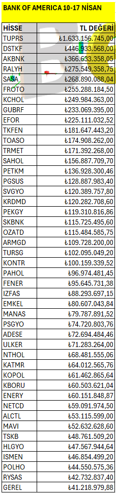 Bank of America’ın haftalık bazda Borsa İstanbul’da en fazla yatırım yaptığı hisselerin listesi. Listeyi PDF formatında indirip inceleyebilirsiniz.