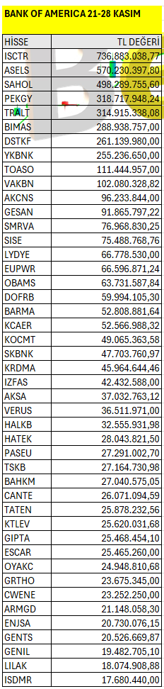 Bank of America’ın haftalık bazda Borsa İstanbul’da en fazla yatırım yaptığı hisselerin listesi. Listeyi PDF formatında indirip inceleyebilirsiniz.