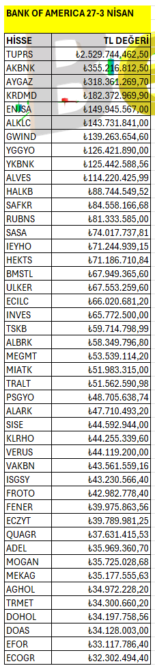 Bank of America’ın haftalık bazda Borsa İstanbul’da en fazla yatırım yaptığı hisselerin listesi. Listeyi PDF formatında indirip inceleyebilirsiniz.