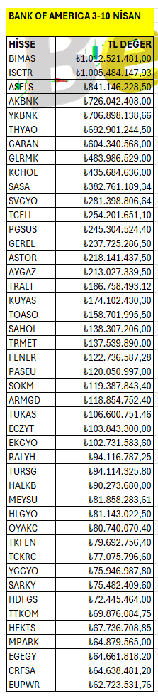 Bank of America’ın haftalık bazda Borsa İstanbul’da en fazla yatırım yaptığı hisselerin listesi. Listeyi PDF formatında indirip inceleyebilirsiniz.