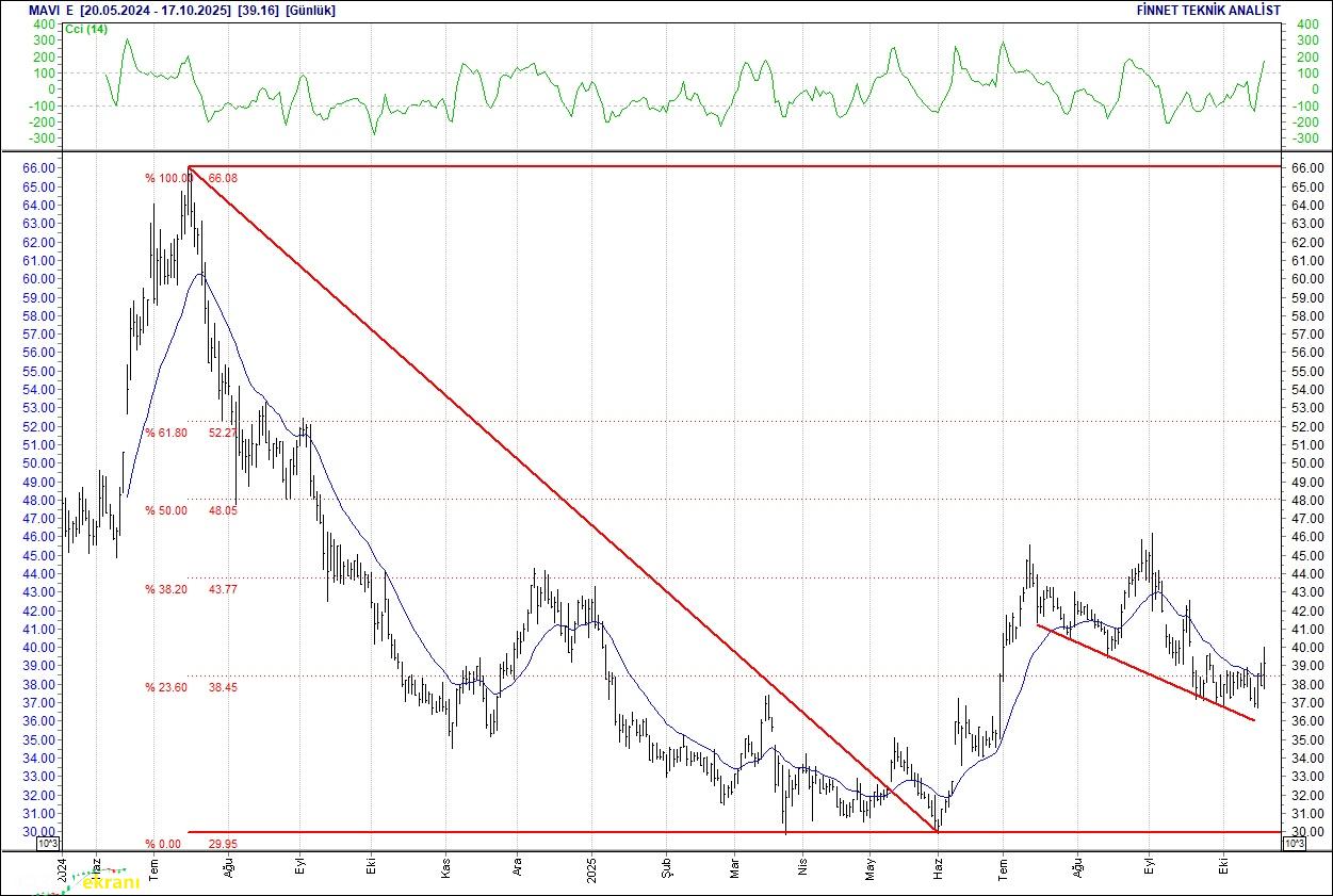MAVİ GİYİM İZLENMELİ 36.72 – 40.06 aralığında hareket eden hisse 39.16 seviyesinin altında kapanışlarda 37.00 seviyesindeki desteğini test edebilir. 39.16 seviyesinin üzerindeki kapanışlarda ise direnç 39.90 seviyesinde bulunuyor.