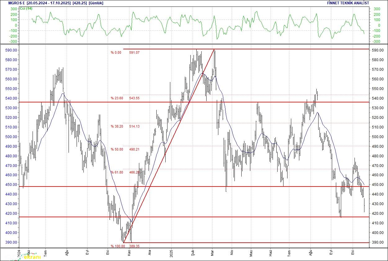MİGROS TİCARET SATIŞ BASKISINDA Desteklerine doğru geri çekiliyor. 452.75 seviyesinde satıcılar güçlendiği gözleniyor. nbsp;İşlem hacmi azalıyor. Senedin ilk desteği 407.50 seviyesinde bulunurken nbsp;ilk direnci 450.00 seviyesinde bulunuyor. 20 günlük ortalamasının altında. Alım aralığı: 407.50-400.00 Satım aralığı: 450.00-462.50 Endeks Ağırlığı (%): 1.31 Haftalık Değişim: IMKB 100 Endeksindeki ağırlığı geçen haftaya göre 0.002 puan arttı.