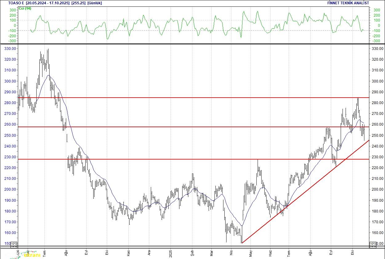 TOFAŞ OTO. FAB. DESTEK ARAYIŞINDA Düşüş seyrinde olduğu gözleniyor. 255.25 seviyesinin altındaki kapanışlarda 247.00 seviyesindeki desteğini test edebilir. Bu seviyenin üzerinde tutunmayı başarabilirse 262.50 seviyesindeki direncine doğru atağa geçebilir. 20 günlük ortalamasının altında. Alım aralığı: 247.00-244.00 Satım aralığı: 262.50-267.50 Endeks Ağırlığı (%): 0.99 Haftalık Değişim: IMKB 100 Endeksindeki ağırlığı geçen haftaya göre -0.039 puan azaldı.
