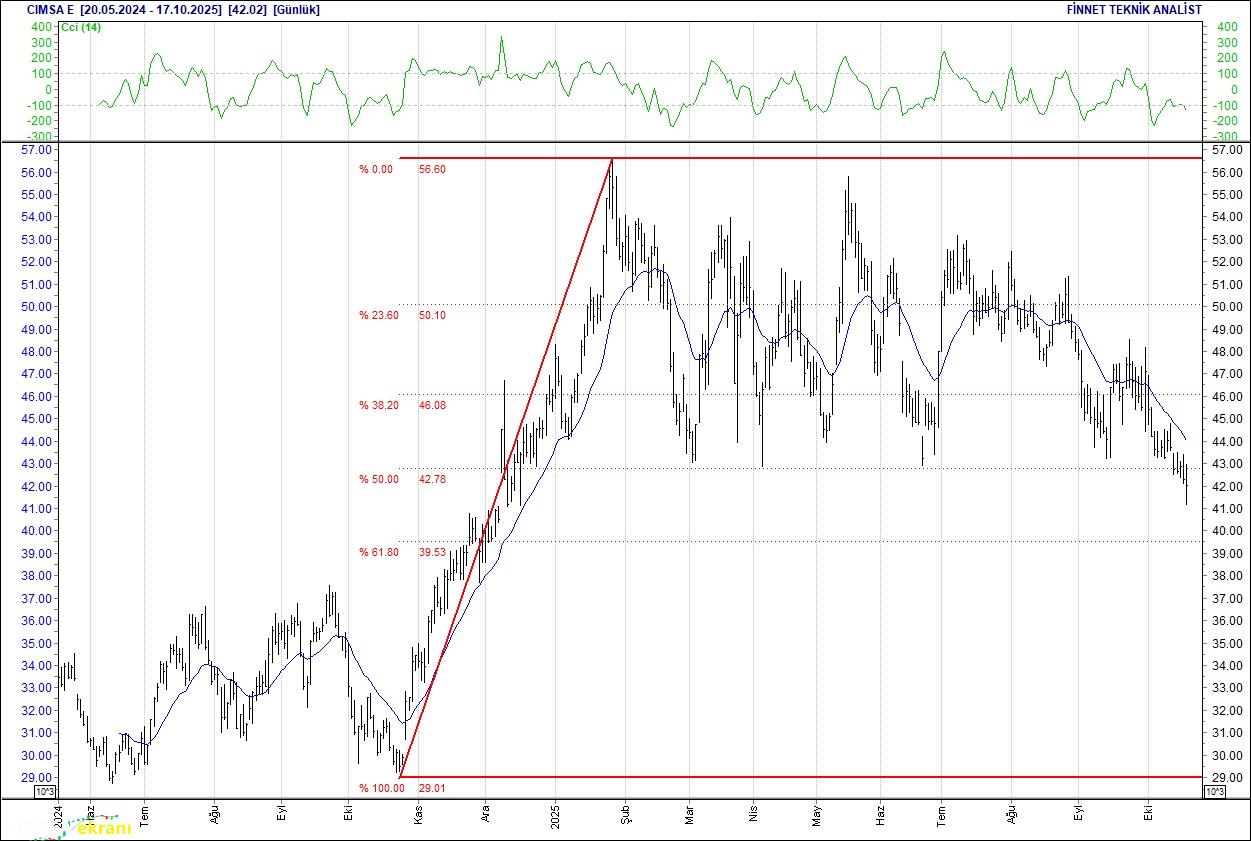 ÇİMSA GÜÇ KAYBEDİYOR 43.52 seviyesinin üzerine çıkamadı. Güç kaybediyor, satışların sürmesi halinde 40.25 seviyesindeki desteğine gerileyebilir.
