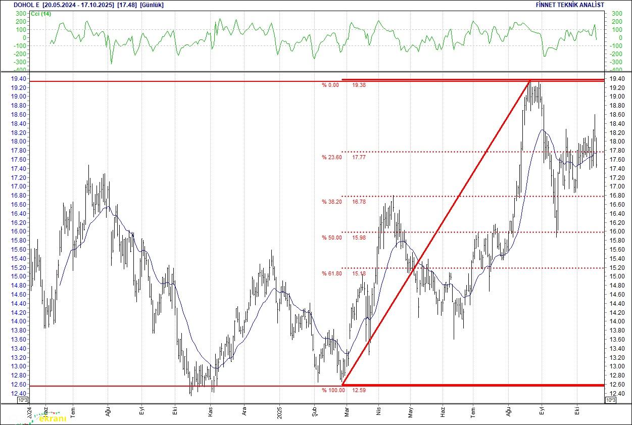 DOĞAN HOLDİNG SATICILAR GÜÇLÜ Güç kaybediyor. 18.61 seviyesinden gelen satışlarla düşüş seyrinde.