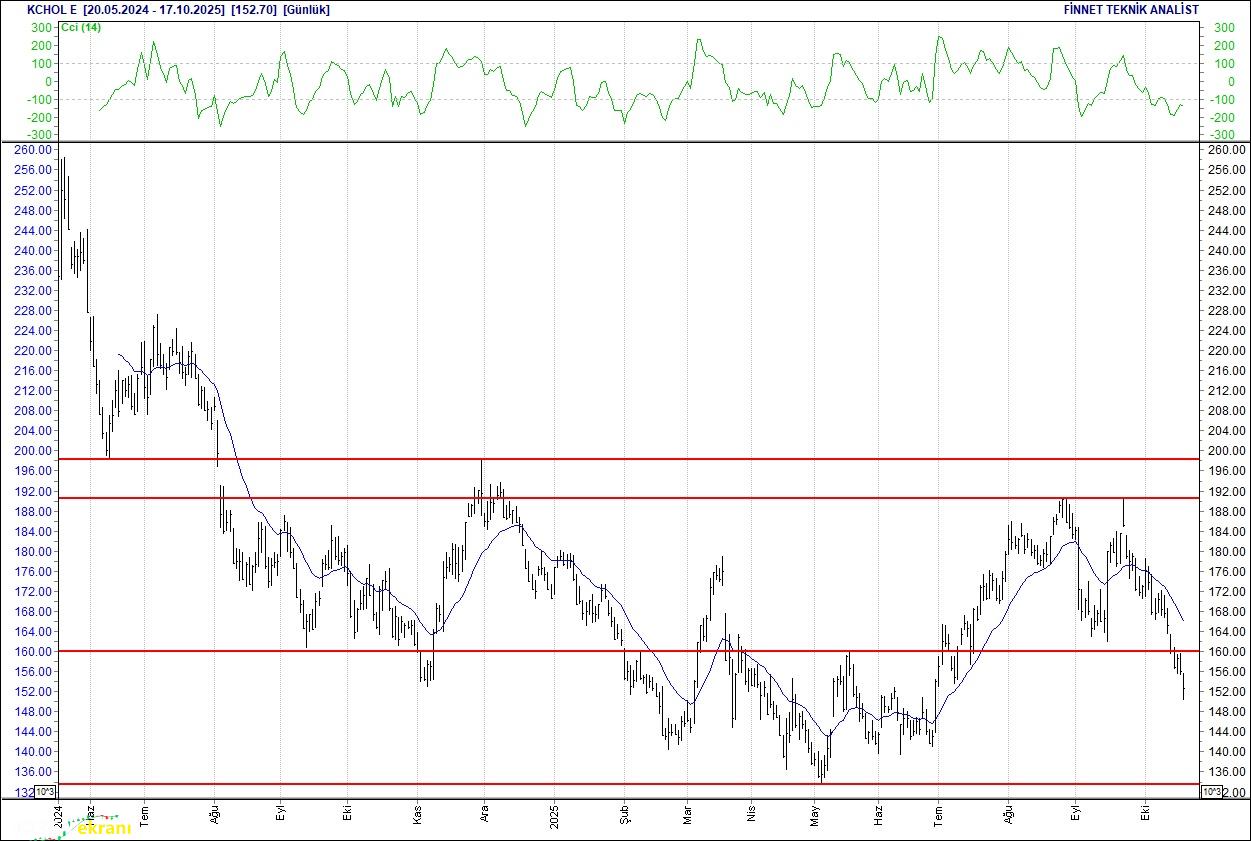 KOÇ HOLDİNG TABAN OLUŞUMU İZLENMELİ Hissede 152.7 seviyesinin altındaki kapanışlar, 144.00 seviyesine doğru satışların devam etmesine neden olabilir. 152.7 seviyesinin üzerindeki kapanışlarda ise 168.00 seviyesindeki direncini test edebilir. nbsp;20 günlük ortalamasının altında. Alım aralığı: 144.00-140.00 Satım aralığı: 168.00-174.00 Endeks Ağırlığı (%): 2.83 Haftalık Değişim: IMKB 100 Endeksindeki ağırlığı geçen haftaya göre -0.073 puan azaldı.