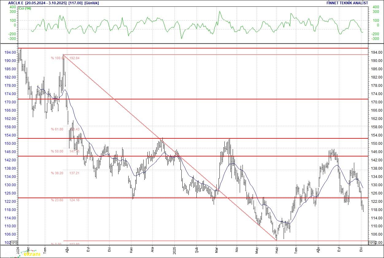 Endeks içerisinde geçtiğimiz hafta en yüksek işlem hacmi 58.99 milyar TL ile Türk Hava Yolları hissesinde olurken, bu şirketi 36.87 milyar TL ile Yapı ve Kredi Bank. takip etti. Endeksin düşüşünde Faktoring sektöründeki kaybın etkili olduğu görülmekte. Endeks geçtiğimiz haftayı yüzde 2.62 azalışla 10,859 puandan kapattı. Endeksin dolar bazında fiyatı ise 261 seviyesinde bulunuyor. Endeksin geçtiğimiz haftaki ortalama işlem hacmi 137.11 milyar TL olarak gerçekleşti. BİST 100 endeksi 7, 20 ve 50 günlük hareketli ortalamalarının altında hareket ediyor. Endeksin hareketli ortalamalarının altında kalması aşağı yönlü hareketleri destekleyebilir. RSI göstergesi 45.12 seviyesinde bulunan endeksin momentumunun 97.25 seviyesinde olduğu görülüyor. Yukarı yönlü hareketlerde 11,046 ve 11,234 direnç seviyeleri olarak takip edilecek. Olası geri çekilmelerde ise 10,751 ve 10,643 destek seviyeleri söz konusu. 2 yıllık tahvil faizi 39.22 seviyesinde bulunuyor. ARÇELİK PARA ÇIKIŞI GÖZLENİYOR Hissede 117 seviyesinin altındaki kapanışlarda 105.00 seviyesine doğru gerileyebilir. 117 seviyesinin üzerindeki kapanışlarda ise 128.00 seviyesindeki direncini test edebilir. 20 günlük ortalamasının altında. Alım aralığı: 105.00-98.50 Satım aralığı: 128.00-132.00 Endeks Ağırlığı (%): 0.62 Haftalık Değişim: IMKB 100 Endeksindeki ağırlığı geçen haftaya göre -0.048 puan azaldı. BİM MAĞAZALAR DİRENÇLER İZLENMELİ Yükseliş seyrinde olduğu dikkat çekiyor. 525 seviyesinden gelen alımlarla atağa geçti. 563.5 seviyesinin üzerinde kapanışlarda 585.00 seviyesine yönelebilir. 563.5 seviyesinin altında kapanışlarda 520.00 seviyesine doğru geri çekilme yaşanabilir.