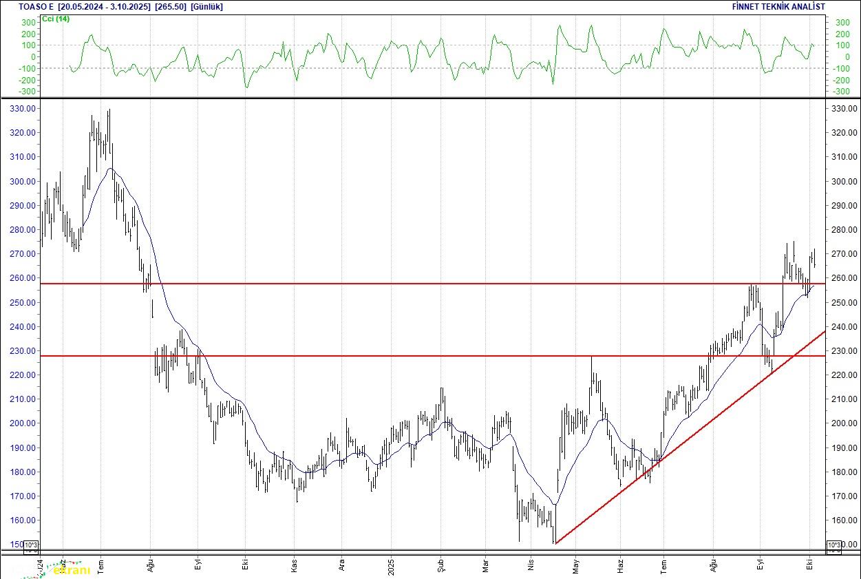 20 günlük ortalamasının üzerinde. Alım aralığı: 95.00-95.00 Satım aralığı: 101.00-98.00 Endeks Ağırlığı (%): 3.67 Haftalık Değişim: IMKB 100 Endeksindeki ağırlığı geçen haftaya göre 0.154 puan arttı. TEKFEN HOLDİNG DESTEK ARAYIŞINDA Düşüş seyrinde olduğu gözleniyor. 83 seviyesinin altındaki kapanışlarda 79.00 seviyesindeki desteğini test edebilir. Bu seviyenin üzerinde tutunmayı başarabilirse 88.50 seviyesindeki direncine doğru atağa geçebilir. 20 günlük ortalamasının altında. Alım aralığı: 79.00-75.00 Satım aralığı: 88.50-98.00 Endeks Ağırlığı (%): 0.28 Haftalık Değişim: IMKB 100 Endeksindeki ağırlığı geçen haftaya göre -0.032 puan azaldı. TOFAŞ OTO. FAB. DESTEĞİNİN ÜZERİNDE TUTUNMALI 255.00 seviyesindeki desteğinin üzerinde.