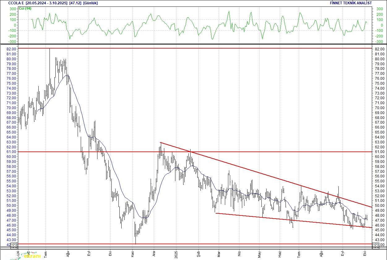 20 günlük ortalamasının üzerinde. Alım aralığı: 520.00-520.00 Satım aralığı: 585.00-565.00 Endeks Ağırlığı (%): 7.05 Haftalık Değişim: IMKB 100 Endeksindeki ağırlığı geçen haftaya göre 0.493 puan arttı. COCA COLA İÇECEK DİRENÇLER İZLENMELİ Güç topluyor. 45.48 seviyesinden gelen alımlarla çıkış seyrinde.