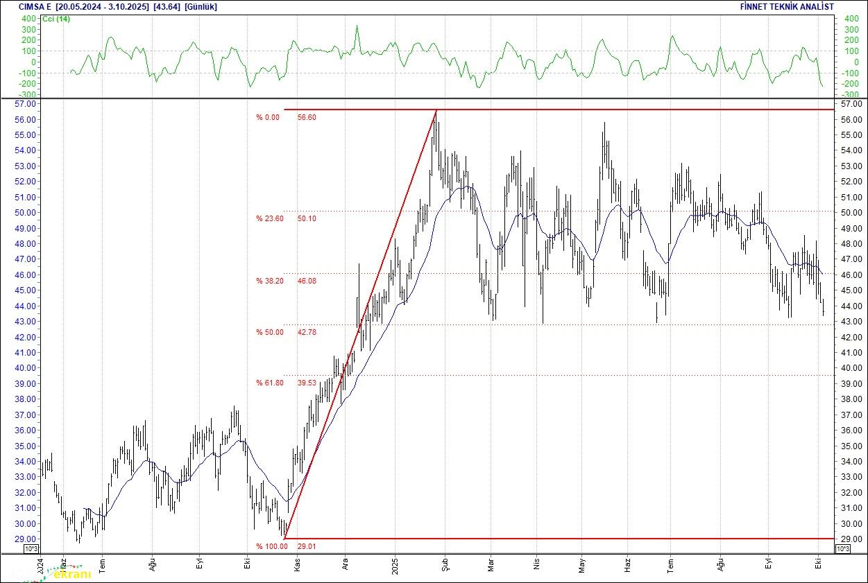 49.09 seviyesindeki direncin aşılması hissede alımların güçlenmesini sağlayabilir. İlk destek 46.25 seviyesinde bulunuyor. 20 günlük ortalamasının altında. Alım aralığı: 46.25-45.25 Satım aralığı: 46.75-48.75 Endeks Ağırlığı (%): 1.01 Haftalık Değişim: IMKB 100 Endeksindeki ağırlığı geçen haftaya göre 0.034 puan arttı. ÇİMSA DESTEK ARAYIŞINDA Düşüş seyrinde olduğu gözleniyor.