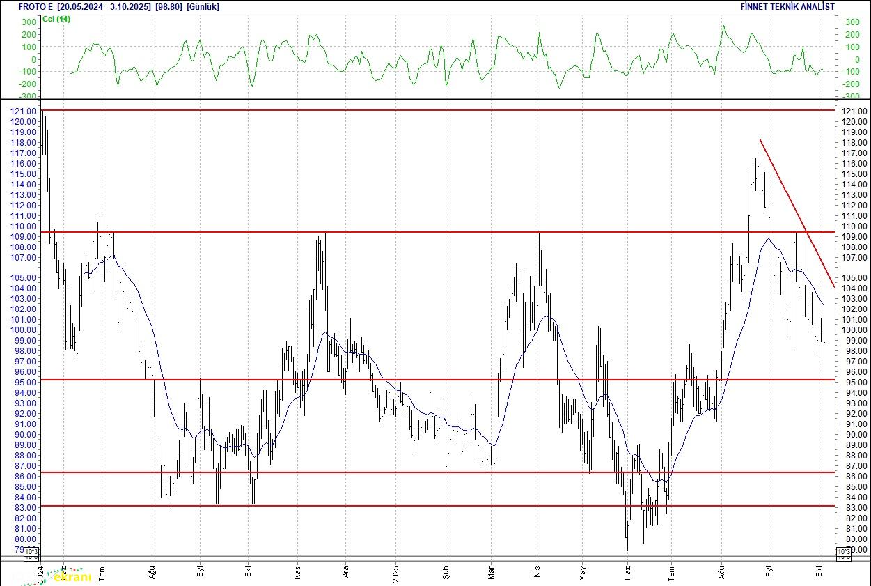 İlk destek 17.30 seviyesinde bulunuyor. 20 günlük ortalamasının üzerinde. Alım aralığı: 17.30-17.10 Satım aralığı: 17.80-17.50 Endeks Ağırlığı (%): 0.51 Haftalık Değişim: IMKB 100 Endeksindeki ağırlığı geçen haftaya göre 0.012 puan arttı. FORD OTOSAN DİRENÇTE ZORLANDI 97-102.3 aralığında hareket eden hisse güç kaybediyor. 98.8 seviyesinin altında kapanışlarda 96.50 seviyesine gerileyebilir.