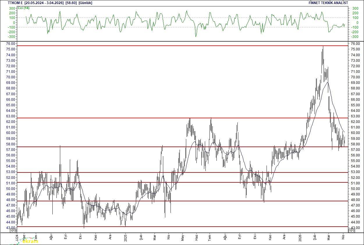 İlk destek 11.00 seviyesinde bulunuyor. 20 günlük ortalamasının altında. Alım aralığı: 11.00-10.60 Satım aralığı: 11.40-12.20 Endeks Ağırlığı (%): 0.31 Haftalık Değişim: IMKB 100 Endeksindeki ağırlığı geçen haftaya göre -0.002 puan azaldı. Türk Telekom