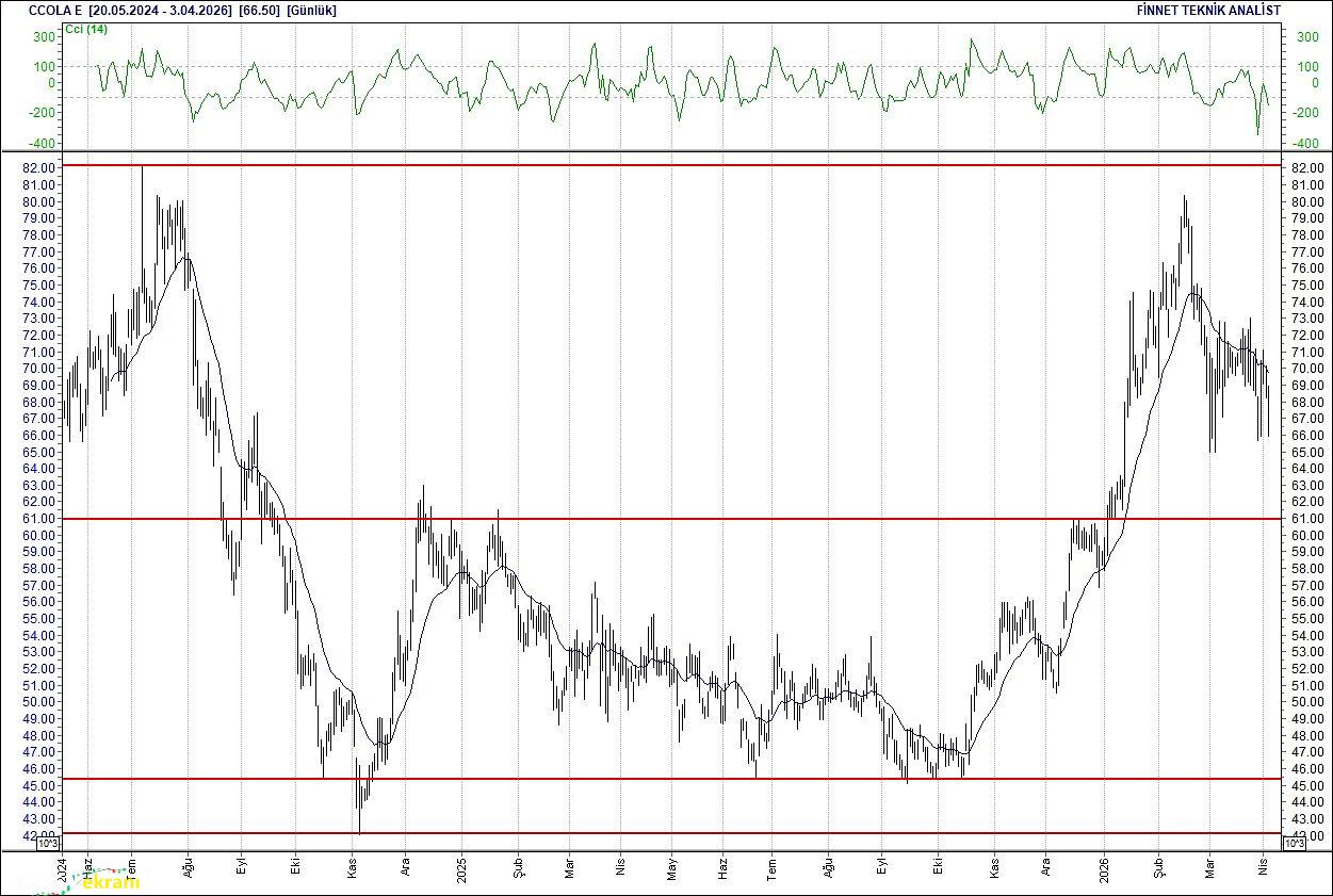 691 seviyesinin altına kayması halinde ise 647.62 seviyesine doğru geri çekilme yaşanabilir. 20 günlük ortalamasının üzerinde. Alım aralığı: 680.00-675.00 Satım aralığı: 690.00-690.00 Endeks Ağırlığı (%): 7.23 Haftalık Değişim: IMKB 100 Endeksindeki ağırlığı geçen haftaya göre 0.110 puan arttı. Coca Cola İçecek