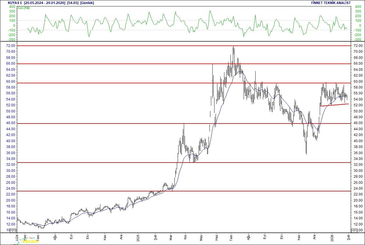 Kuyas Yatırım Satıcılar güçlü Güç kaybediyor. 59 seviyesinden gelen satışlarla düşüş seyrinde. 53.00 seviyesinin üzerinde tutunmayı başarması halinde toparlanabilir. 54.65 seviyesinin altındaki kapanışlar güç kaybının sürmesine neden olabilir. 20 günlük ortalamasının altında. Alım aralığı: 53.00-52.00 Satım aralığı: 55.50-58.00 Endeks Ağırlığı (%): 0.52 Haftalık Değişim: IMKB 100 Endeksindeki ağırlığı geçen haftaya göre -0.033 puan azaldı. Oyak Çimento Desteğinin üzerinde tutunmalı 25.00 seviyesindeki desteğinin üzerinde.