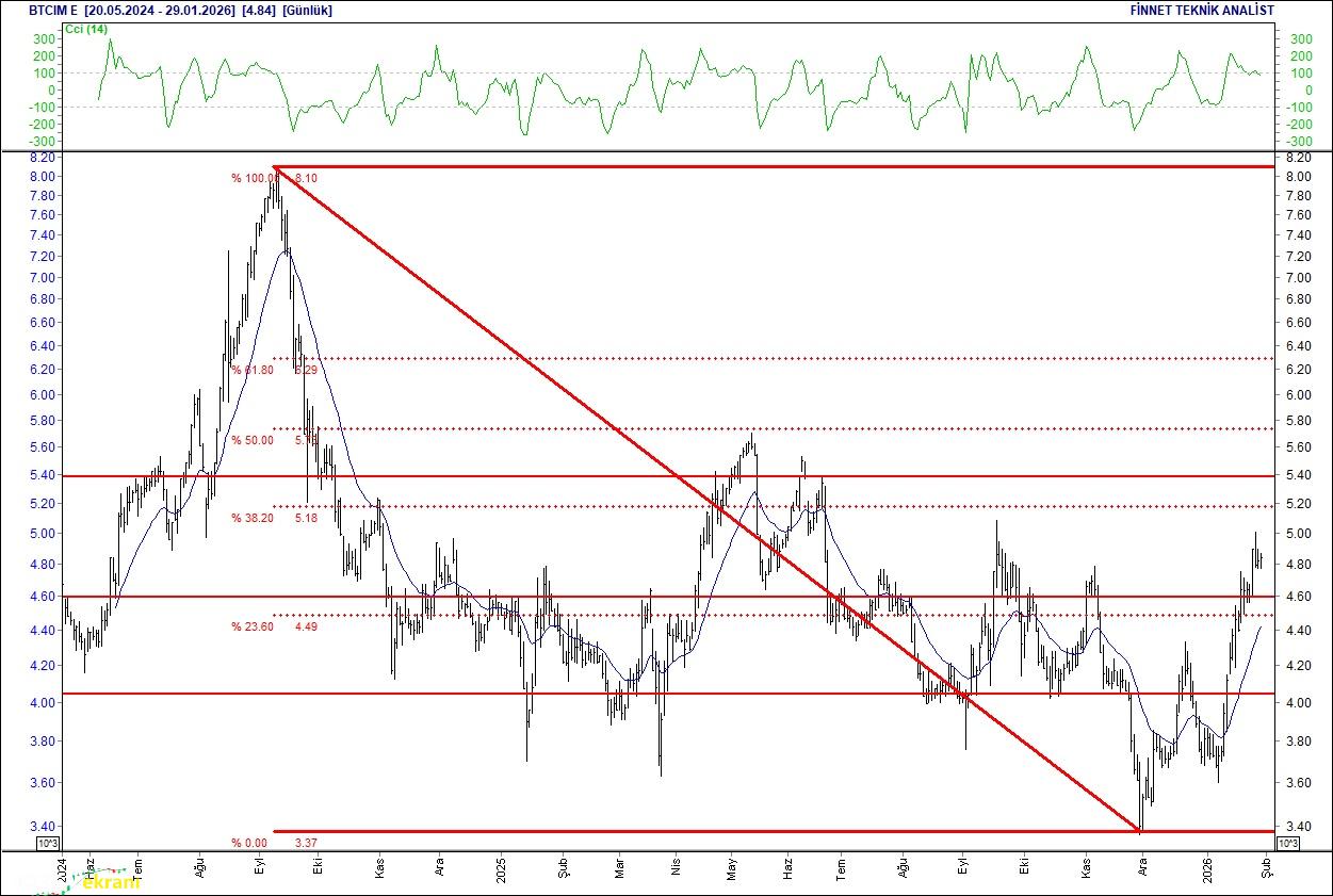 20 günlük ortalamasının üzerinde. Alım aralığı: 143.00-119.00 Satım aralığı: 180.00-195.00 Endeks Ağırlığı (%): 1.46 Haftalık Değişim: IMKB 100 Endeksindeki ağırlığı geçen haftaya göre -0.002 puan azaldı. Batı Çimento Dirençler İzlenmeli Hareketlendiği gözleniyor. 4.56 seviyesinden alımların güçlendiği dikkat çekiyor.