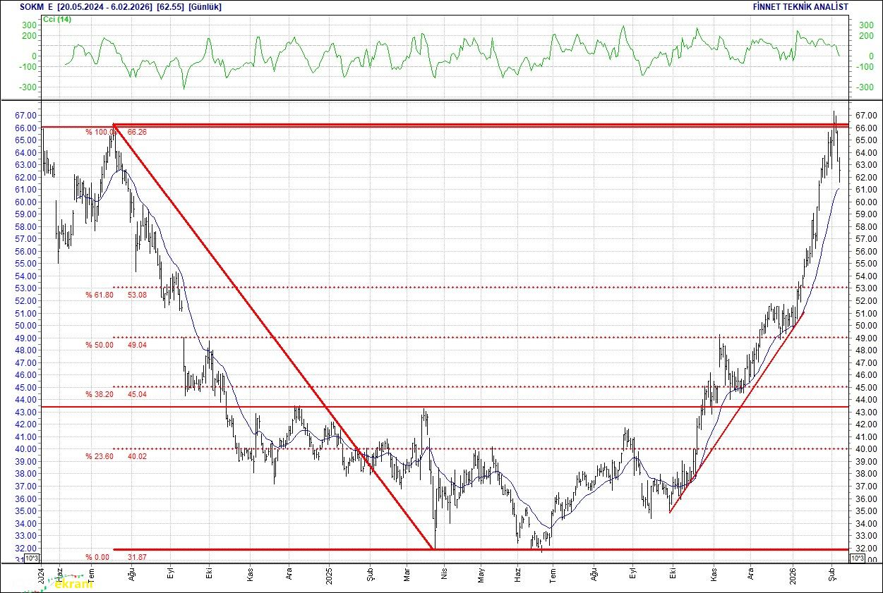 Bu seviyenin üzerinde tutunmayı başarabilirse 110.00 seviyesindeki direncine doğru atağa geçebilir. 20 günlük ortalamasının üzerinde. Alım aralığı: 99.00-91.50 Satım aralığı: 110.00-112.00 Endeks Ağırlığı (%): 2.70 Haftalık Değişim: IMKB 100 Endeksindeki ağırlığı geçen haftaya göre -0.101 puan azaldı. Şok Marketler Ticaret Güç kaybediyor 67.4 seviyesinin üzerine çıkamadı. Güç kaybediyor, satışların sürmesi halinde 60.00 seviyesindeki desteğine gerileyebilir. 62.55 seviyesinin üzerindeki alımlar ise hissede alıcıların güçlenmesini sağlayabilir. 20 günlük ortalamasının üzerinde. Alım aralığı: 60.00-54.50 Satım aralığı: 66.00-69.50 Endeks Ağırlığı (%): 0.47 Haftalık Değişim: IMKB 100 Endeksindeki ağırlığı geçen haftaya göre -0.003 puan azaldı.