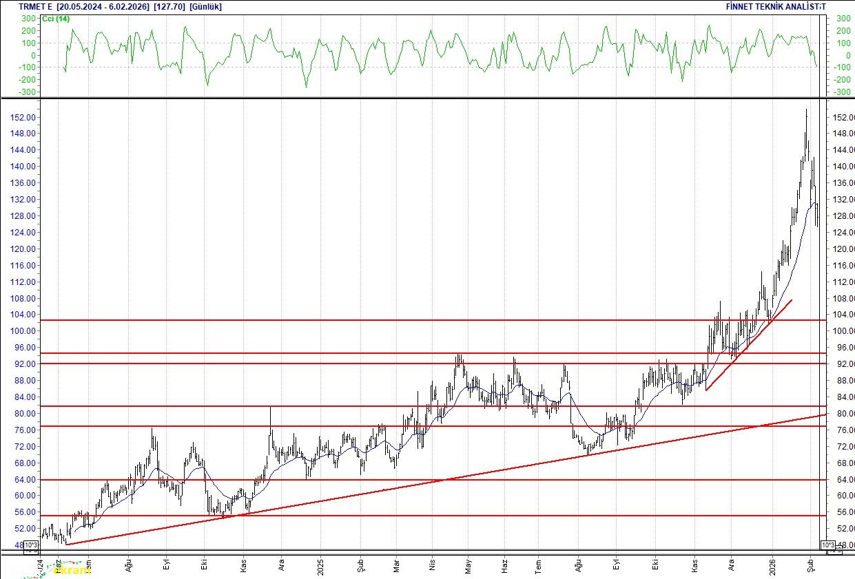 TR Anadolu Metal Madencilik Düşüşte 142.4 seviyesinden başlayan düşüş seyrinde. 127.7 seviyesinin altındaki kapanışlarda güç kaybı devam edebilir. 127.7 seviyesinin üzerindeki kapanışlarda toparlanmayı deneyebilir. İlk direnci 138.60 seviyesinde bulunuyor. 20 günlük ortalamasının altında. Alım aralığı: 107.00-100.00 Satım aralığı: 132.00-146.00 Endeks Ağırlığı (%): 0.54 Haftalık Değişim: IMKB 100 Endeksindeki ağırlığı geçen haftaya göre -0.047 puan azaldı.