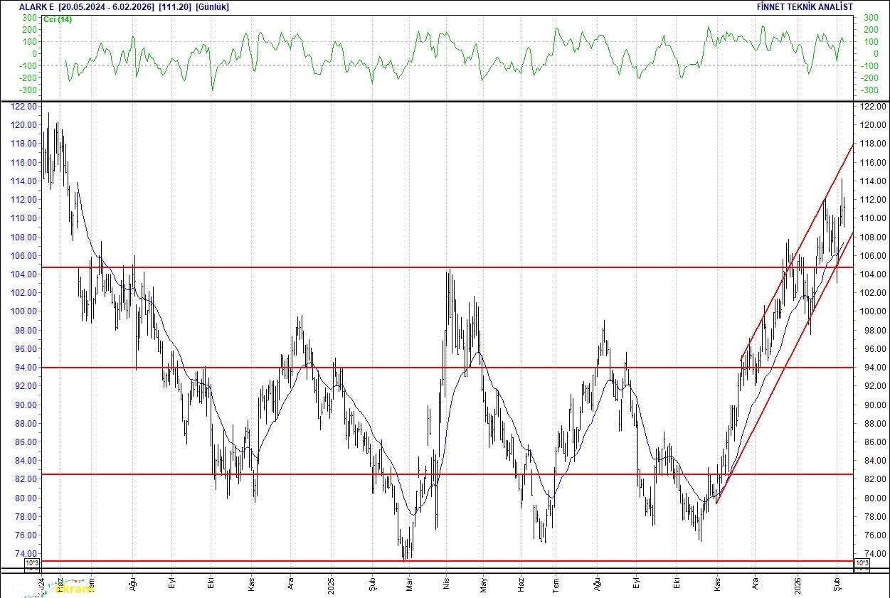 Endeks içerisinde geçtiğimiz hafta en yüksek işlem hacmi 118.97 milyar TL ile Türk Hava Yolları hissesinde olurken, bu şirketi 71.32 milyar TL ile Akbank takip etti. Endeksin düşüşünde Banka sektöründeki kaybın etkili olduğu görülmekte. Endeks geçtiğimiz haftayı yüzde 2.29 azalışla 13,522 puandan kapattı. Endeksin dolar bazında fiyatı ise 311 seviyesinde bulunuyor. Endeksin geçtiğimiz haftaki ortalama işlem hacmi 208.83 milyar TL olarak gerçekleşti. BİST 100 endeksi 7 günlük hareketli ortalamasının altında iken, 20 ve 50 günlük hareketli ortalamalarının üzerinde hareket ediyor. RSI göstergesi 67.23 seviyesinde bulunan endeksin momentumunun 106.24 seviyesinde olduğu görülüyor. Yukarı yönlü hareketlerde 13,632 ve 13,743 direnç seviyeleri olarak takip edilecek. Olası geri çekilmelerde ise 13,407 ve 13,292 destek seviyeleri söz konusu. 2 yıllık tahvil faizi 34.48 seviyesinde bulunuyor. Anadolu Efes Çıkışta Alıcılar güçleniyor. 18.67 seviyesinden başlayan yükseliş seyrinde. 20.18 seviyesinin üzerinde tutunmayı başarması halinde 21.80 seviyesindeki direncine yönelebilir. Olası bir satış dalgasında 18.20 seviyesinin test edilmesi beklenebilir. 20 günlük ortalamasının üzerinde. Alım aralığı: 18.20-16.90 Satım aralığı: 21.80-21.70 Endeks Ağırlığı (%): 0.92 Haftalık Değişim: IMKB 100 Endeksindeki ağırlığı geçen haftaya göre 0.051 puan arttı. Alarko Holding Dirençler izlenmeli Güç topluyor. 103.1 seviyesinden gelen alımlarla çıkış seyrinde. 118.65 seviyesindeki direncin aşılması hissede alımların güçlenmesini sağlayabilir.