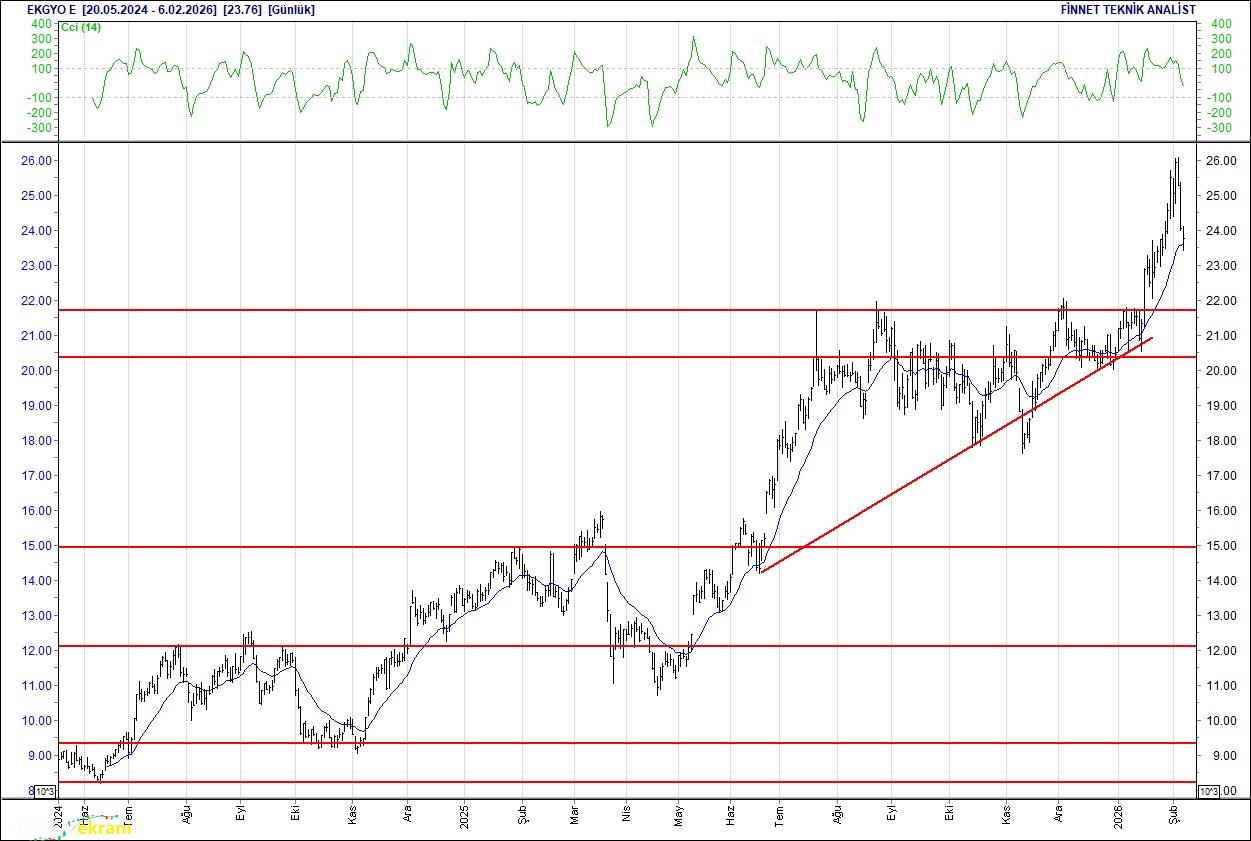 İlk destek 640.00 seviyesinde bulunuyor. 20 günlük ortalamasının üzerinde. Alım aralığı: 640.00-585.00 Satım aralığı: 715.00-750.00 Endeks Ağırlığı (%): 6.71 Haftalık Değişim: IMKB 100 Endeksindeki ağırlığı geçen haftaya göre 0.239 puan arttı. Emlak Konut GMYO Destek arayışında Düşüş seyrinde olduğu gözleniyor.