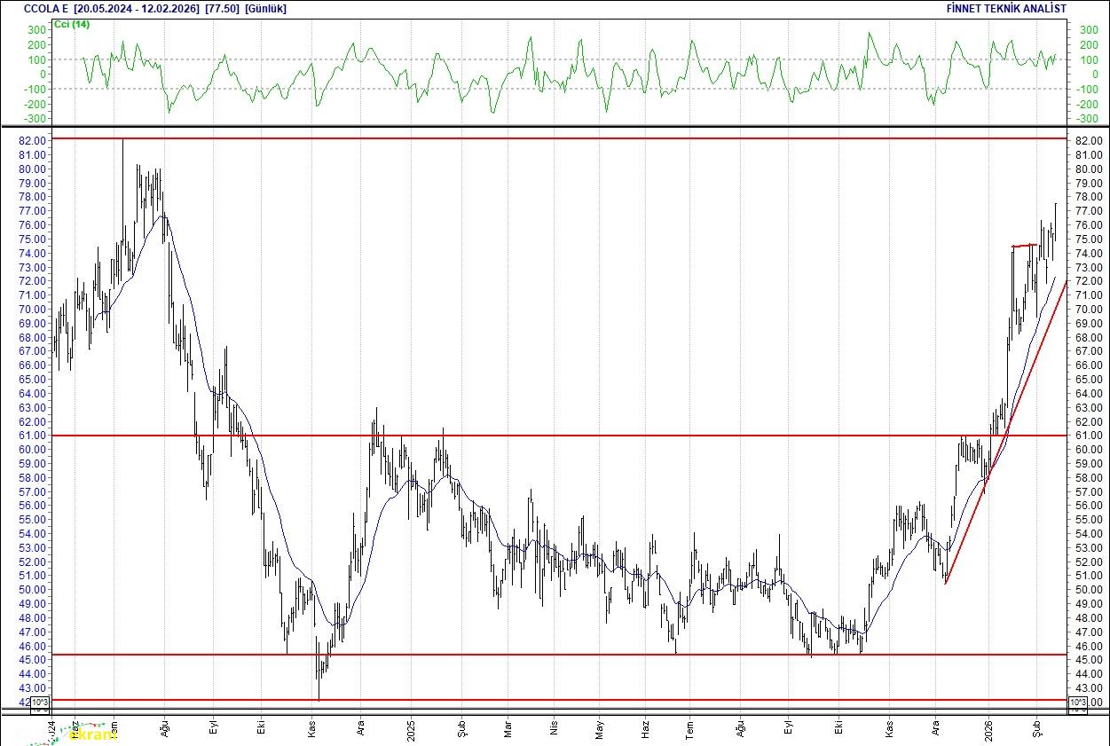 Hisse yükselirken hacim düşüyor. 71.85 seviyesinden başlayan yükseliş seyrinde. Ancak hacim zayıf. 77.5 seviyesinin üzerinde tutunmayı başarması halinde 83.48 seviyesine yönelebilir. Olası bir satış dalgasında 72.50 seviyesinin test edilmesi beklenebilir.