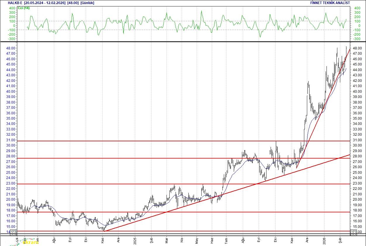44.50 seviyesindeki desteğinin üzerinde tutunmayı başarabilirse 51.19 seviyesindeki dirence yönelebilir. 48 seviyesinin altındaki kapanışlarda 44.50 seviyesini test edilebilir.