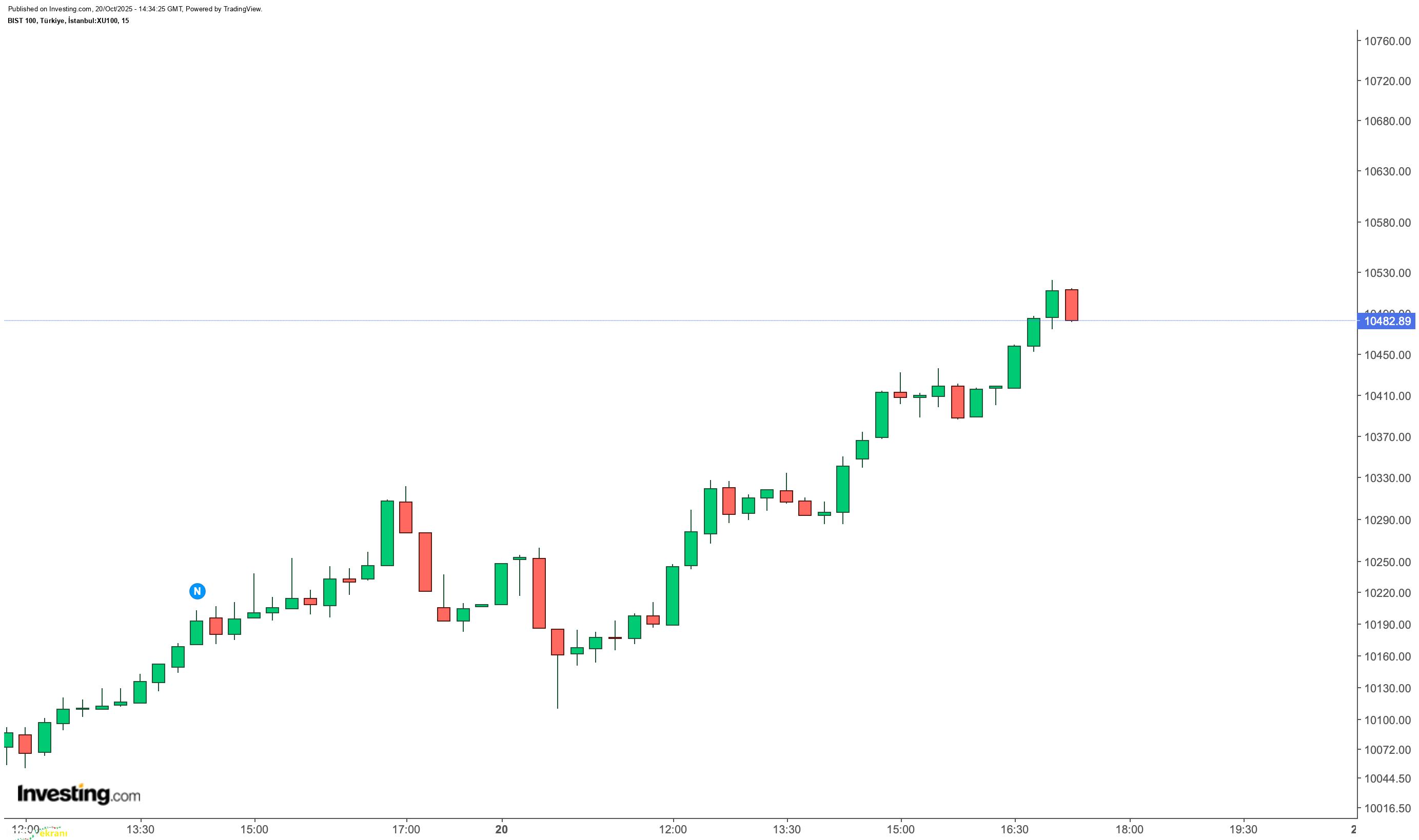 Investing.com – BIST 100 endeksi, haftanın ilk işlem gününde volatil fiyat hareketleriyle dikkat çekti. Güne pozitif başlayan endeks, kısa bir süreliğine 10.109 puana kadar geriledi. Ardından yönünü yukarı çeviren BIST 100, günün ikinci yarısında yükseliş ivmesini artırarak son saate girildiğinde %2,5’in üzerinde değer kazancıyla 10.470 puan bandında hareket etti. BIST 100 dışı endeks de kapanışa doğru %1,5’in üzerinde artışa ulaştı. Endekste işlem hacmi 130 milyar TL’yi aşarken, tüm Borsa İstanbul genelinde günlük hacim 180 milyar TL’nin üzerine çıktı.