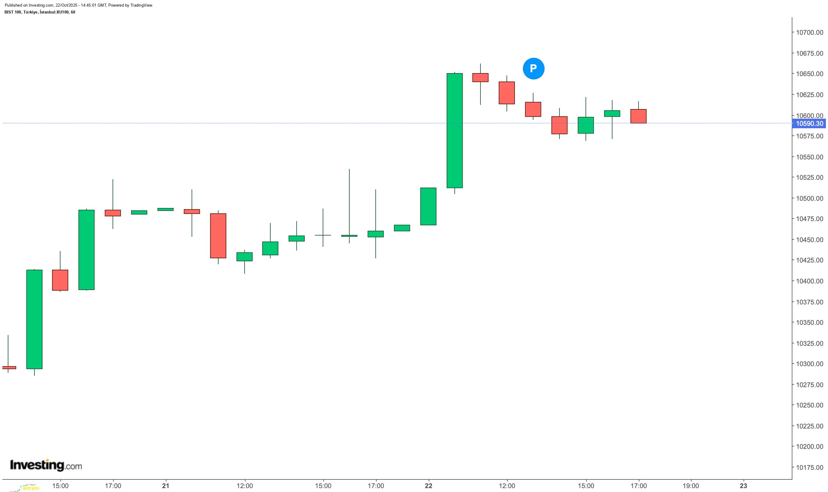 Investing.com – BIST 100 endeksi günü pozitif bir ivmeyle geçirdi. Sabah seansında gelen alımların etkisiyle 10.661 puana kadar yükselen endeks, günün ilerleyen saatlerinde daha yatay bir seyir izledi. Son saat itibarıyla BIST 100 endeksi yaklaşık %1,3’lük artışla 10.600 puan sınırında hareket ediyor. BIST 100 dışı endekste de gün sonuna doğru yaklaşık %1 oranında değer artışı gözlemleniyor. Sektörel bazda değerlendirildiğinde; inşaat, spor ve ticaret en fazla yükselen alt sektörler olarak öne çıktı. Günün sonuna doğru değer kaybeden dört sektör ise kobi, ulaştırma, madencilik ve metal sanayi olarak kaydedildi.
