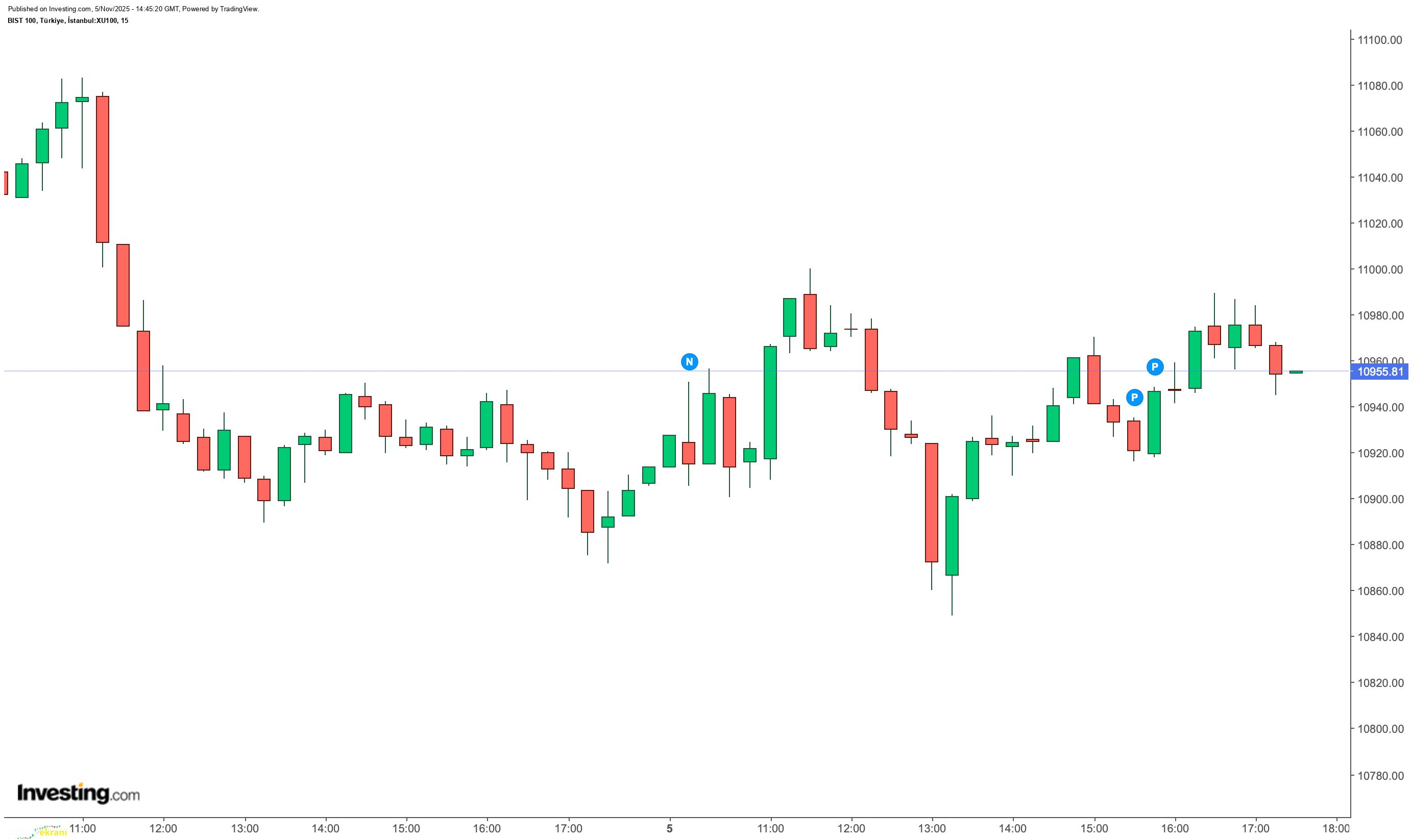 Investing.com – BIST 100 endeksi, bugün hafif pozitif eğilimli yatay bir seyir izledi. Sabah seansında 11.000 seviyesine kadar yükselen endeks, ardından gelen satışlarla 10.848 puana kadar geriledi. Kapanışa doğru yeniden toparlanan BIST 100, son saatte %0,30 civarında yükselişle 10.950 puan seviyelerinde hareket etti. BIST 100 dışı endeks ise negatif ayrışarak günü ekside tamamlama eğiliminde kaldı. Endeksin işlem hacmi kapanışa yaklaşılırken 140 milyar TL seviyesini aşarken, Borsa İstanbul genelinde toplam işlem hacmi 200 milyar TL’nin üzerine çıktı. Alt endeksler bazında bakıldığında, iletişim, bilişim ve petrol-kimya sektörleri günün en çok yükselenleri olurken; metal, holding ve madencilik endeksleri en fazla değer kaybeden sektörler olarak öne çıktı. Bankacılık endeksi ise yaklaşık %1 oranındaki yükselişle BIST 100’e olumlu katkı sağladı.