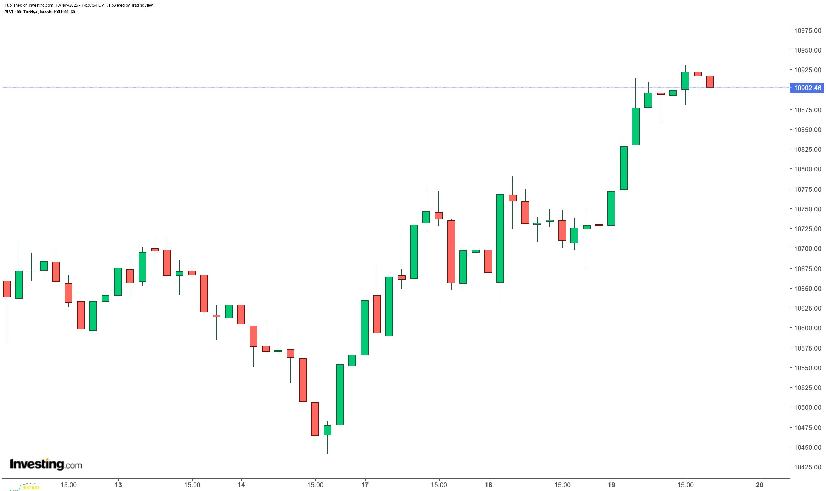 Investing.com – BIST 100 endeksi, bugün pozitif ivmesini hızlandırarak günün son saatlerinde %1,5’in üzerinde yükselişle 10.900 puan sınırında işlem görüyordu.