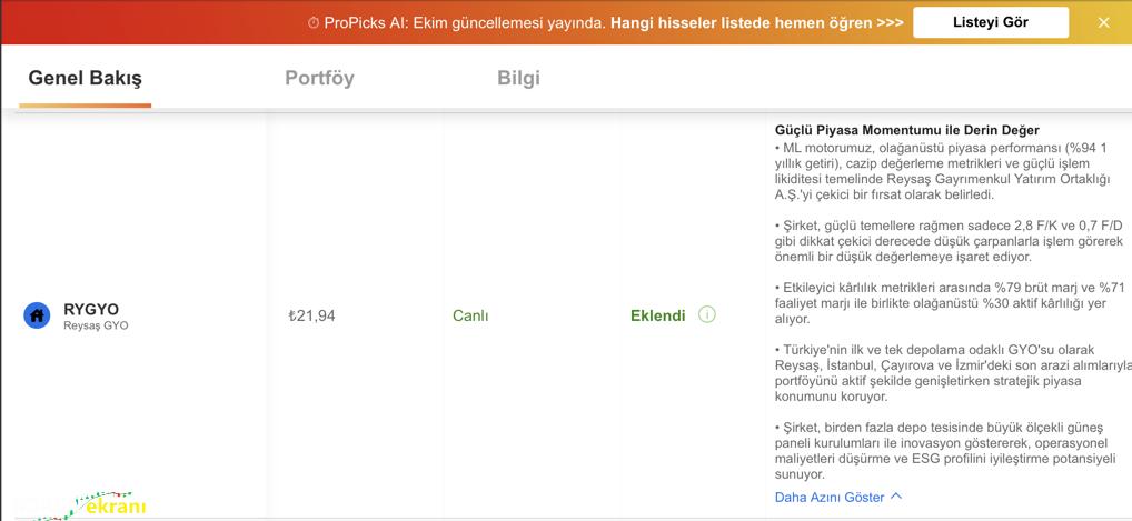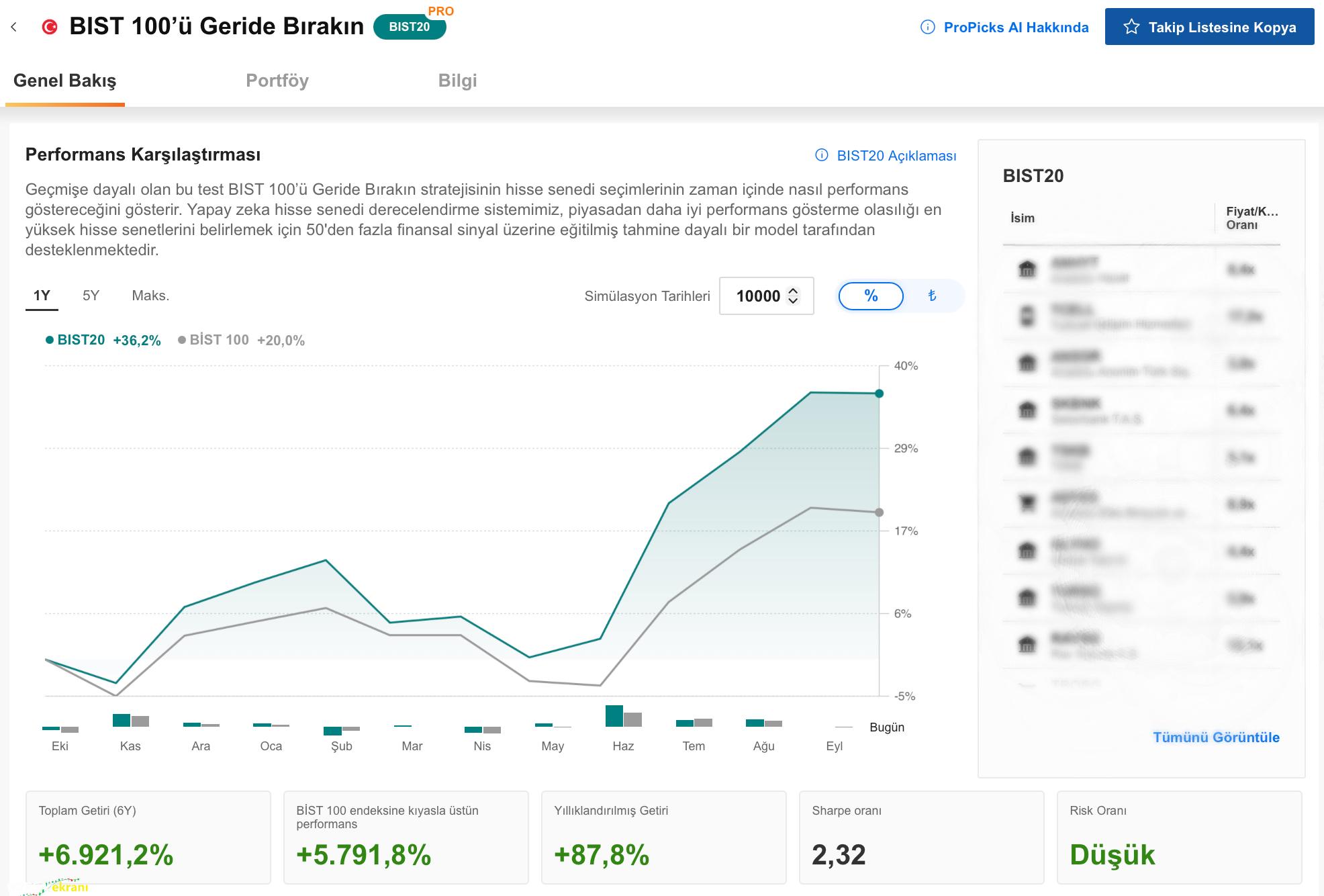 InvestingPro stratejileri her ay düzenli olarak hisse taraması yaparak en yüksek potansiyel taşıyan hisseleri belirliyor. Portföyler 20 hisse ile sınırlı tutulurken, temel ve teknik analiz kriterlerine göre olumsuz sinyaller veren veya adil değerinin üzerinde fiyatlanan hisseler portföyden çıkarılıyor. Bu sayede düşük risk anlayışına dayalı, dinamik bir portföy oluşturuluyor. Yapay zekâ destekli sistem yalnızca orta ve uzun vadeli sürdürülebilir getiri sağlamakla kalmıyor; aynı zamanda kısa vadede fırsat sunan hisseleri de yakalayabiliyor. Ekim ayının ilk günlerinde yaşanan yükselişler bunun somut örneğini ortaya koydu.