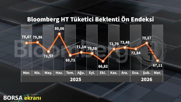 Bu çerçevede, Bloomberg HT Tüketici Beklenti Ön Endeksi bir önceki aya göre yüzde 11,32 oranında azalarak 67,11 değerini aldı.