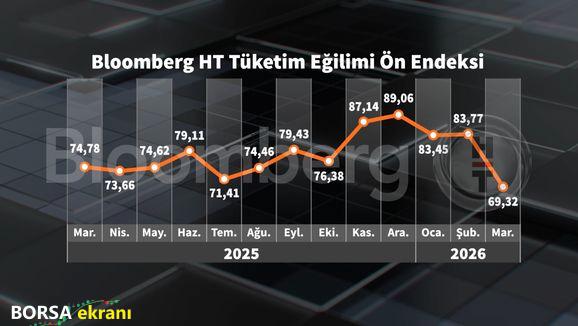 Diğer taraftan, içinde bulunduğumuz dönemin dayanıklı tüketim malları ile otomobil ve konut alımı için uygunluğunu ölçmeye çalışan Bloomberg HT Tüketim Eğilimi Ön Endeksi ise yüzde 17,24 gibi oldukça güçlü bir gerileme ile 69,32 seviyesine indi.