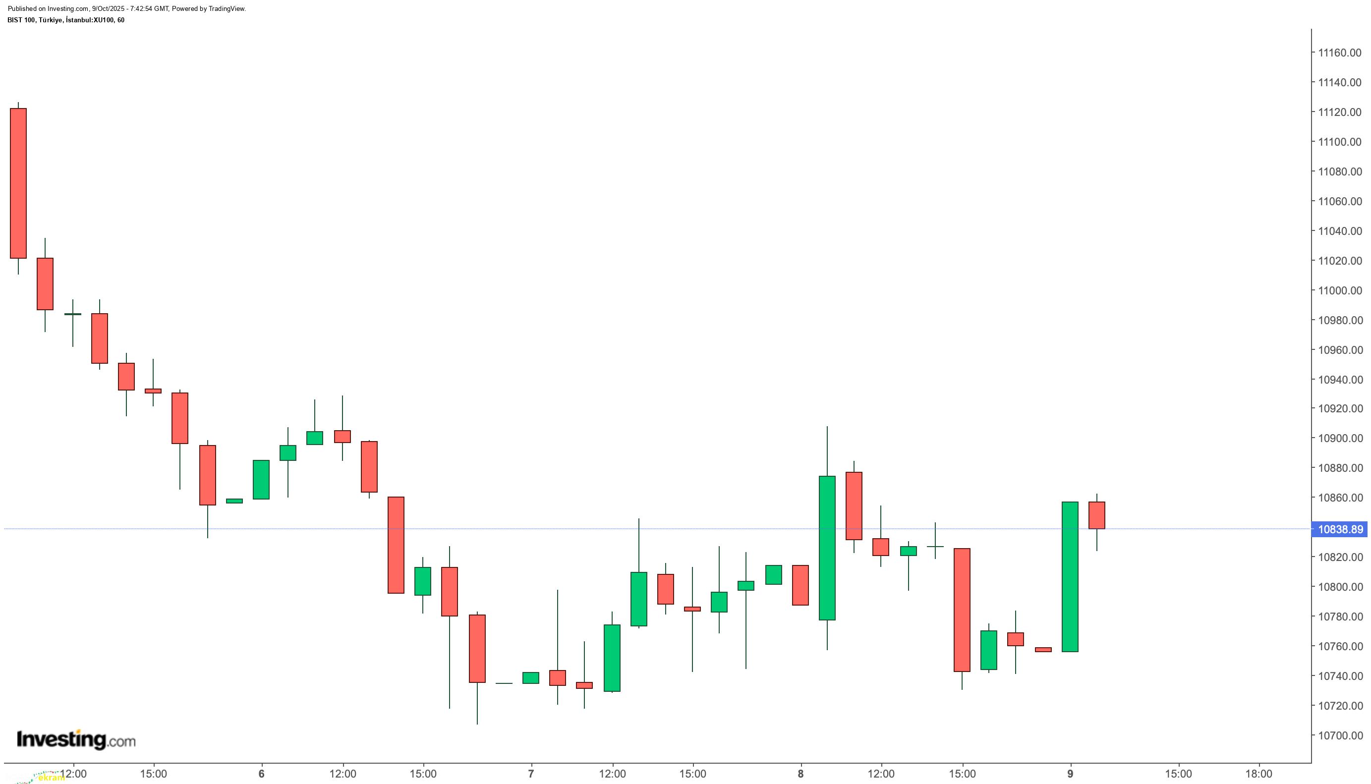 Investing.com – BIST 100 endeksi, güne %0,93 artışla 10.856,73 puandan başladı. İsrail ile Hamas arasındaki ateşkes gelişmesinin desteğiyle pozitif açılış gerçekleştiren endeks, 10.800 puan bandındaki olumlu görünümünü sürdürüyor. BIST 100 dışı endeks de ilk saatte %1 oranında değer artışıyla ivmesini koruyor.