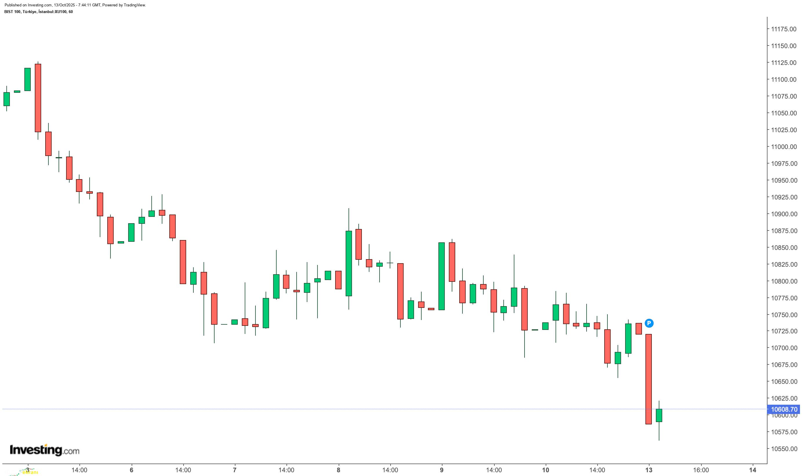 Investing.com – BIST 100 endeksi, yeni haftanın ilk işlem gününe %1,25 oranında düşüşle 10.586,02 puandan başladı. Açılış sonrası negatif eğilimini sürdüren endeks, 10.600 puan sınırına doğru hareket etti. BIST 100 dışı endekslerde de ilk işlemlerde yaklaşık %1’e varan kayıplar kaydedildi. Geçtiğimiz hafta BIST 100 endeksi %1,27 değer kaybederek haftayı 10.720 puandan kapatmıştı. Bu kapanışla birlikte endeksin haftalık bazda negatif serisi üçüncü haftaya taşınmış oldu. Yeni haftaya da düşüşle başlayan borsada, faktoring, petrokimya ve bilişim hisseleri açılışta en çok gerileyen sektör endeksleri olarak öne çıktı. Açılışın ilk saatinde artı bölgede işlem gören herhangi bir sektör endeksi bulunmadı.