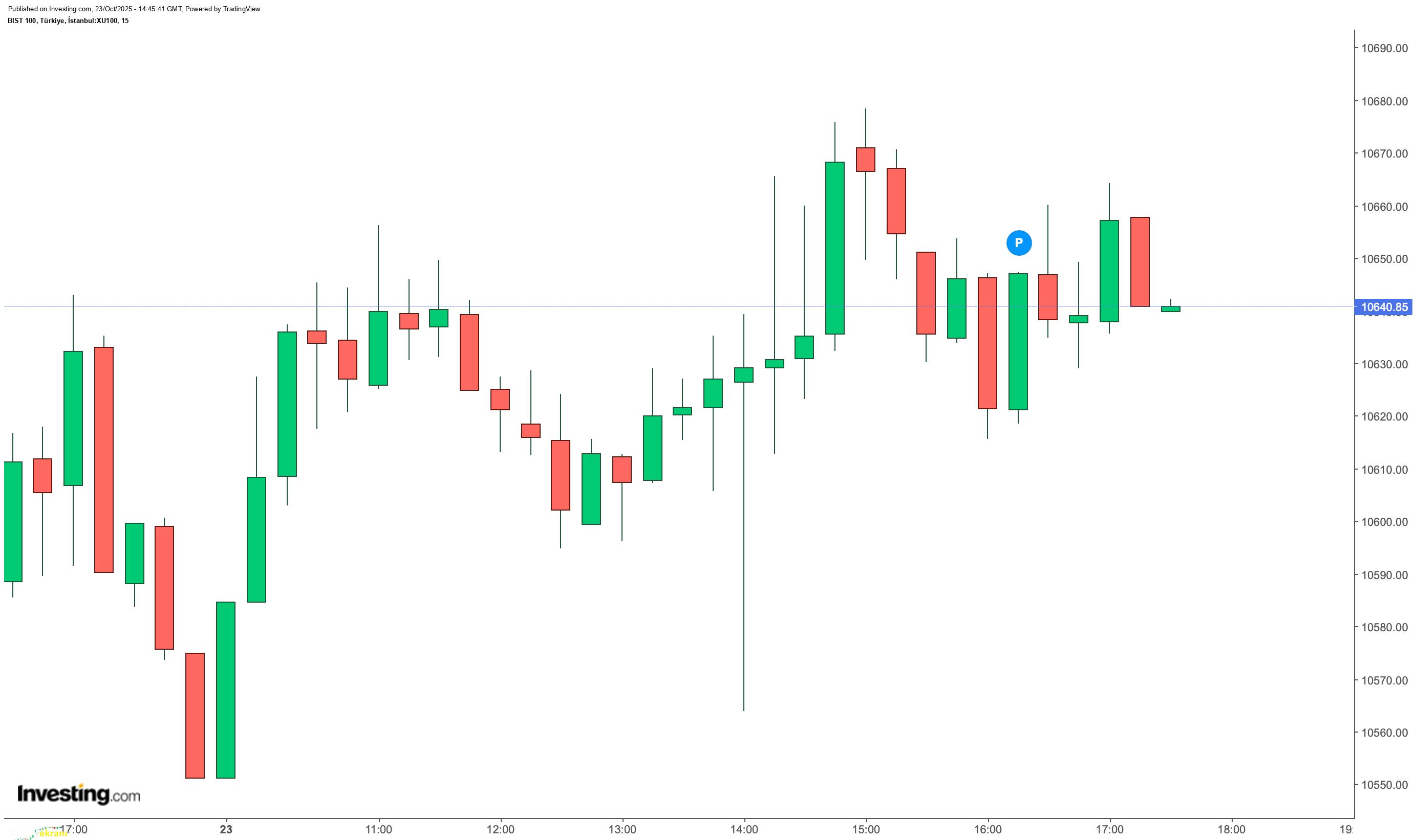 Investing.com – BIST 100 endeksi, bugün de pozitif eğilimini sürdürürken, Türkiye Cumhuriyet Merkez Bankasının (TCMB) faiz kararını açıkladığı dakikalarda volatil hareketler gözlendi. Karar sonrası endeks, kısa süreli olarak 10.560 puan bandına kadar geriledi ancak ardından hızlı bir toparlanma gerçekleştirerek günün zirvesi olan 10.678 puana ulaştı. Gün sonuna gelindiğinde BIST 100 endeksi, yaklaşık %0,7 oranında yükselişle 10.630 puan seviyesinde hareket ediyor. Öte yandan, BIST 100 dışındaki endeksler bugün yatay ve hafif negatif bir görünüm sergiledi. BIST 100 endeksinde işlem hacmi kapanışa doğru 140 milyar TL’yi aşarken, Borsa genelindeki toplam işlem hacmi 200 milyar TL seviyesine yaklaştı. Sektör endekslerinde madencilik, petrokimya ve sigorta öne çıkarken spor, ulaştırma ve kağıt sektörleri günü en çok kayıpla kapatanlar arasında yer aldı. Bankacılık ve holding endekslerinde ise endeksle paralel bir yükseliş eğilimi izlendi.