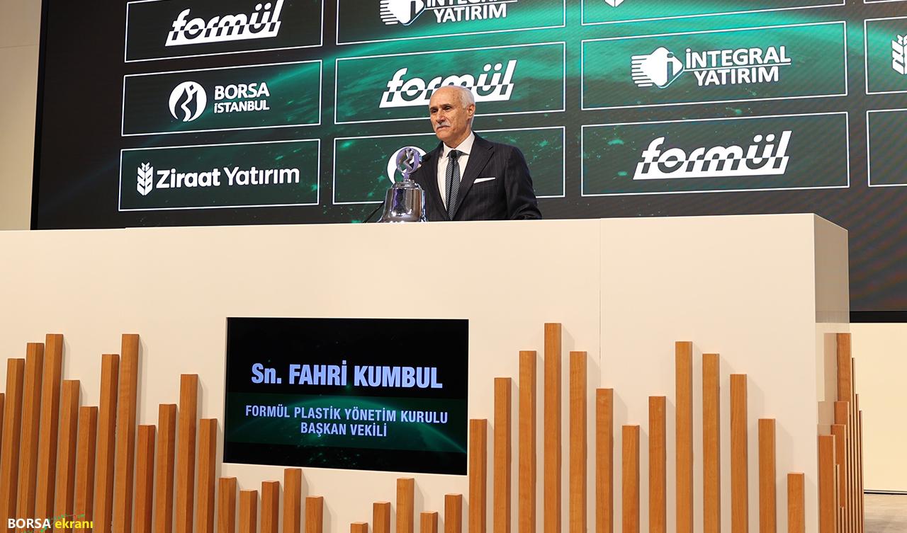 Borsa İstanbul AŞ Genel Müdürü Korkmaz Ergun, törende yaptığı konuşmada, sanayi sektörünün ekonominin ve büyümenin temeli olduğunu belirtti. Ergun, Formül Plastik’in gerçekleştirdiği yatırımlarla altyapısını ve kapasitesini geliştirdiğine işaret ederek, şirketin farklı sektörlerin ihtiyaçlarını yerli üretimle karşılayarak Türkiye’nin en büyük 1000 sanayi kuruluşu arasında yer aldığını kaydetti. Borsada işlem görmeye başlayan Formül Plastik’in yeni yatırımlar yaparak, altyapısını güçlendireceğini, kurumsal yapısını kuvvetlendireceğini ve sürdürülebilir büyümesine devam edeceğini vurgulayan Ergun, “Ben bu nedenle bu başarılı halka arzda emeği geçen herkese çok teşekkür ediyorum. Bu halka arzın sermaye piyasalarına hayırlı olmasını diliyorum. Formül Plastik’e borsamız ailesine hoş geldiniz diyorum.” diye konuştu. – Halka arzla büyüme ve kurumsallaşma hedefiFormül Plastik Yönetim Kurulu Başkan Vekili Fahri Kumbul da Borsa İstanbul’da hisseleri işlem gören Formül Plastik’in, önemli bir dönüm noktasında olduğunu aktardı. Şirketlerinin 30 yılı aşkın süredir plastik boru ve elemanları sektörünün önemli bir temsilcisi olduğunu dile getiren Kumbul, “Şirketimiz yurt dışında ve yurt içinde, yüzlerce ana bayiye ve onlara bağlı on binlerce tali bayi ve müşteriye sahiptir. Kalite anlayışıyla, sunduğu çözümlerle, güven veren tutarlı yaklaşımlarıyla; bulunduğu tüm pazarlarda iyi bir itibar kazanmıştır.” şeklinde konuştu. Kumbul, Formül Plastik’in bundan sonraki süreçte yeni ortaklarıyla daha hızlı ilerleyeceğini kaydederek, hedeflerini daha da büyüteceklerini ve yeni kurumsal sorumluluklar üstleneceklerini vurguladı. Şirket hisselerinin borsada başarılı şekilde işlem görmesinin, gelişim ve büyümenin sağlam bir temeli olacağını vurgulayan Kumbul, halka arzın ardından, mümkün olan en kısa zamanda, iki yeni fabrikalarını daha üretime almayı planladıklarını söyledi.