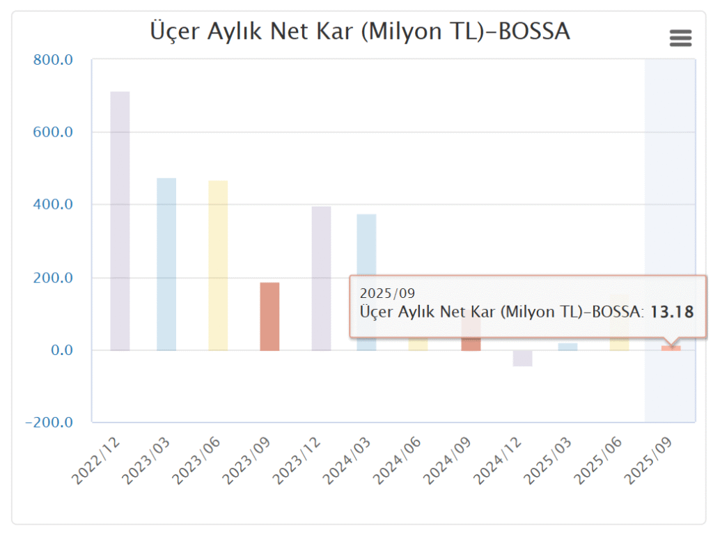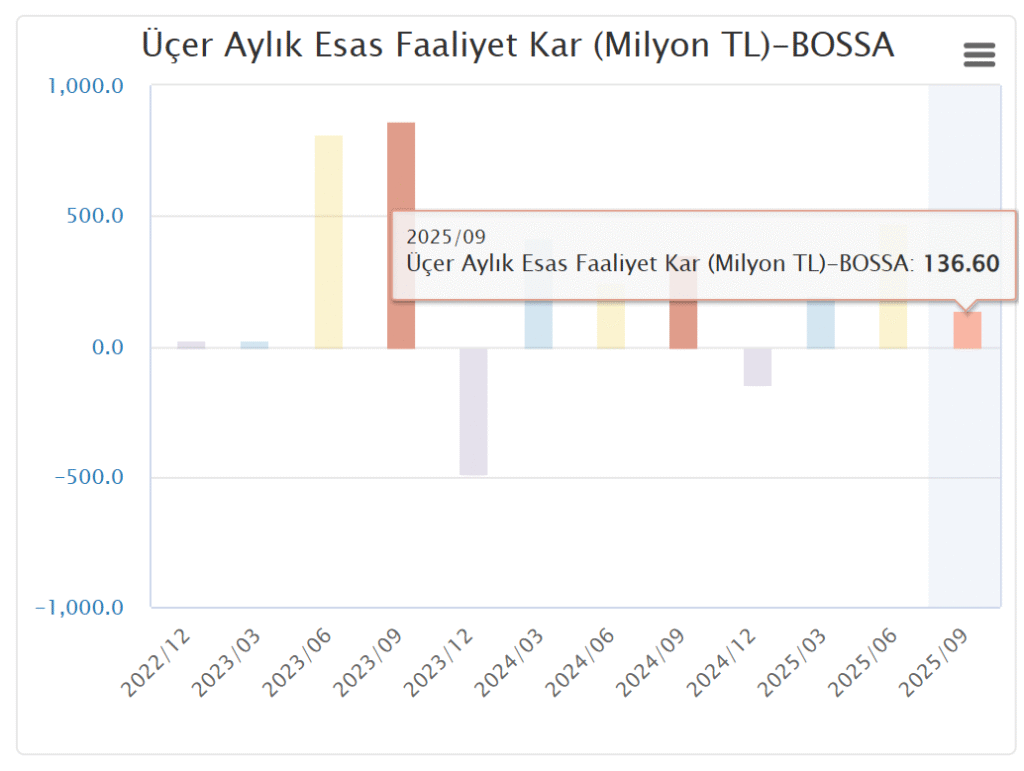 - BOSSA, 2025/09 döneminde satış gelirlerinde artış trendini sürdürüyor.